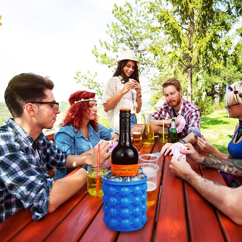 Portable 2 in 1 Large Silicone Ice Bucket Mold for Home Party