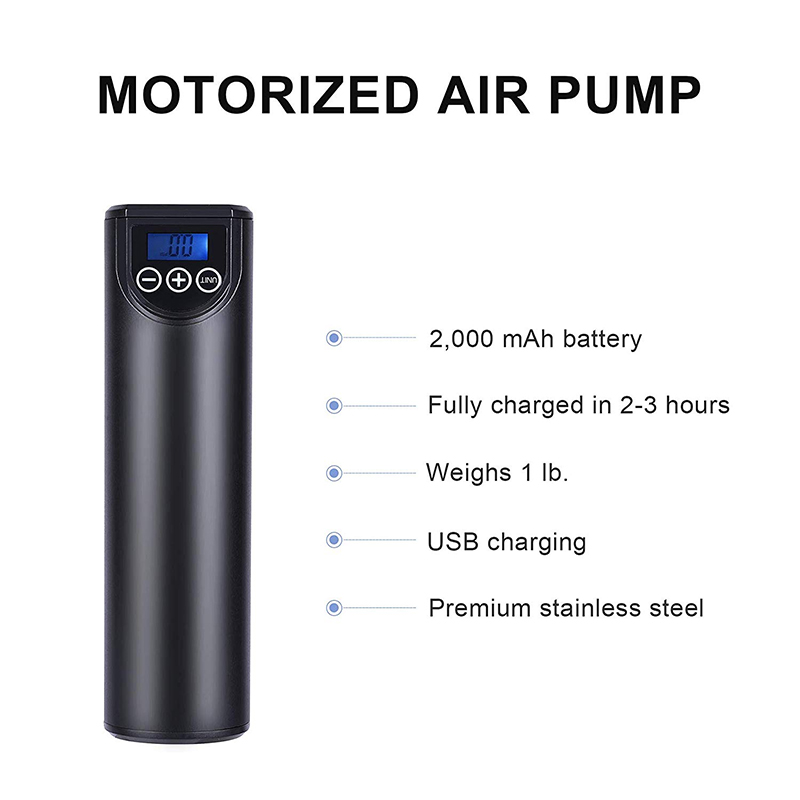 With 2000mAh Certified Lithium-Ion Battery, this portable Compressor is ready to inflate bike, ball etc. The USB charging port supports fast charging.