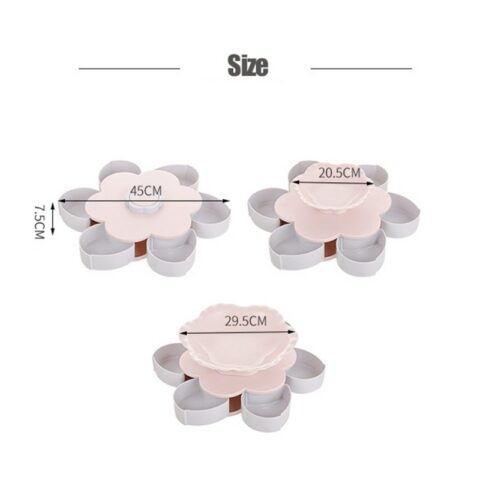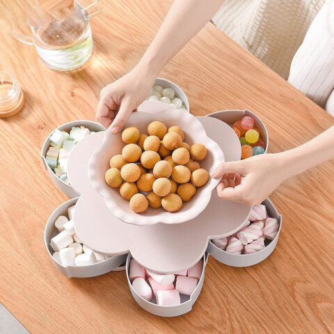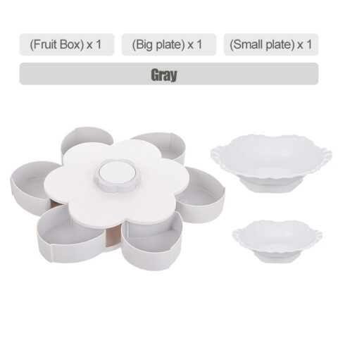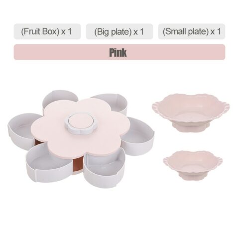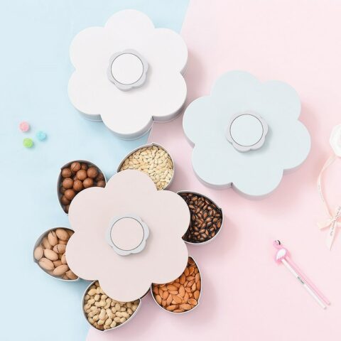 Buy this stylish flower shaped rotatable 6 grid storage box for Nuts and Candies now. Get additional a small plate and a big plate with Free Delivery.